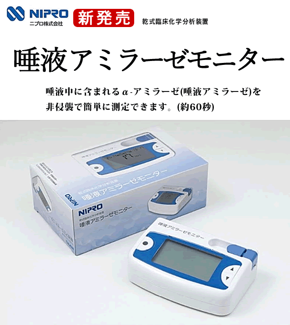 ニプロの酵素分析装置 唾液アミラーゼモニター本体 ストレスチェック 測定キット 特定保守管理医療機器 酵素分析装置 消化酵素 α-アミラーゼ 非侵襲 小型 軽量 日常酵素の分析 官能検査 乾式臨床化学分析装置